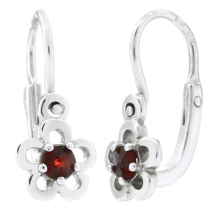 | Český granát - dětské náušnice stříbro Květinka