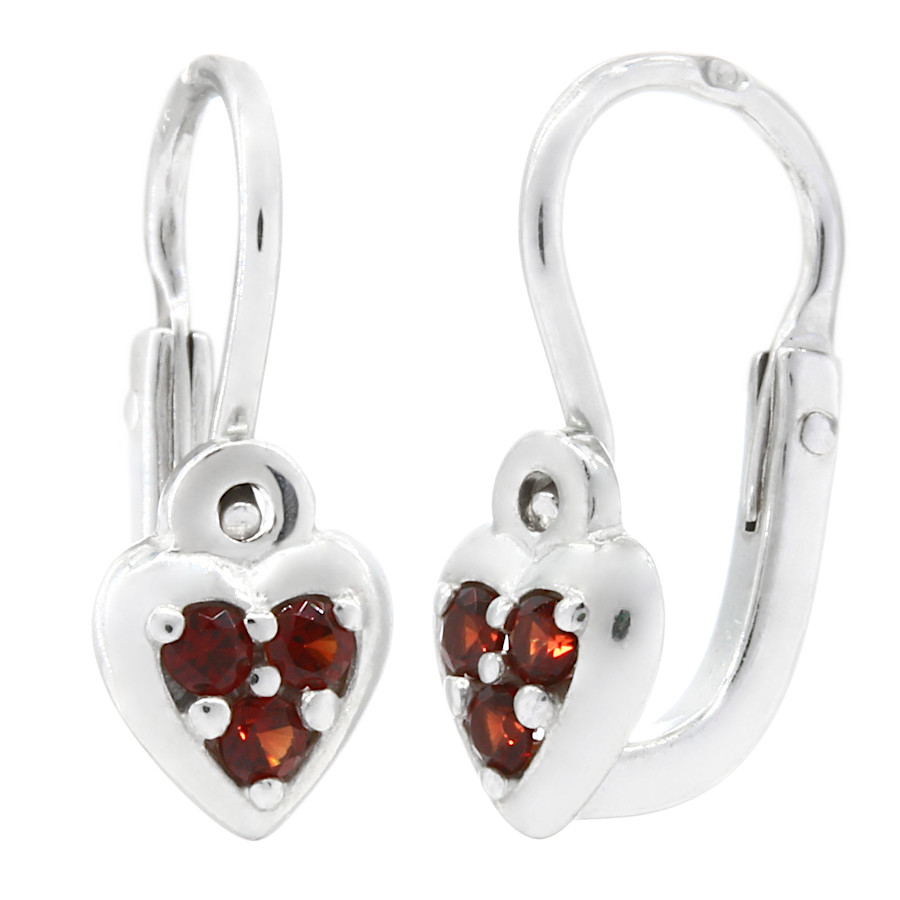 | Český granát - náušnice stříbrné Srdíčko