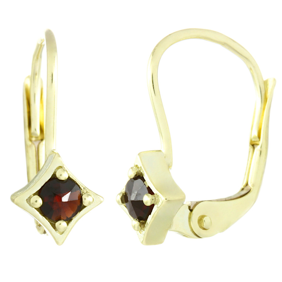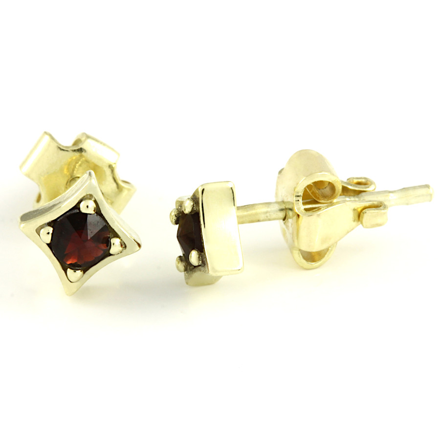 | Český granát - náušnice zlaté Čtverec malý