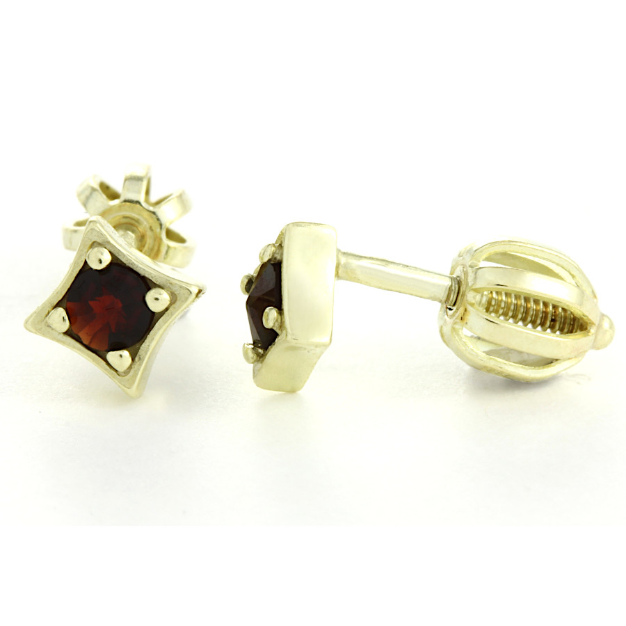 | Český granát - dětské náušnice stříbrné Čtverec malý