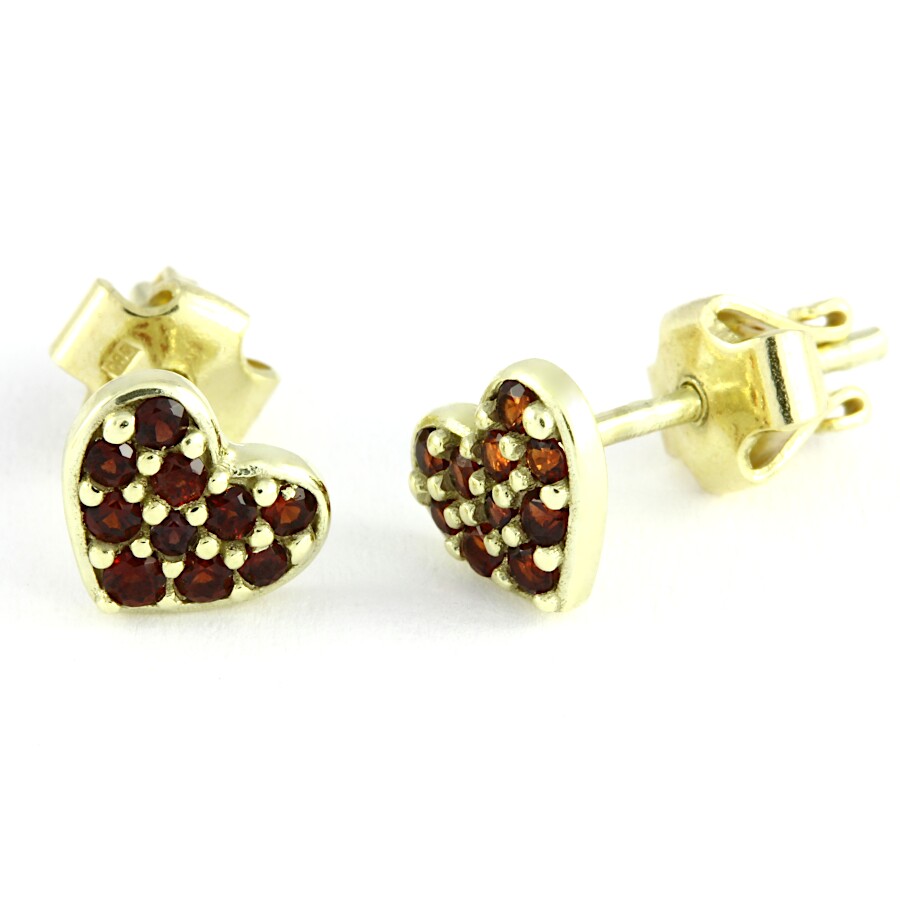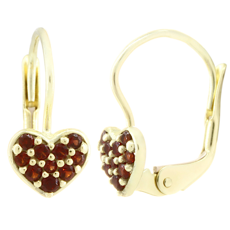 | Český granát - náušnice zlaté Srdíčko