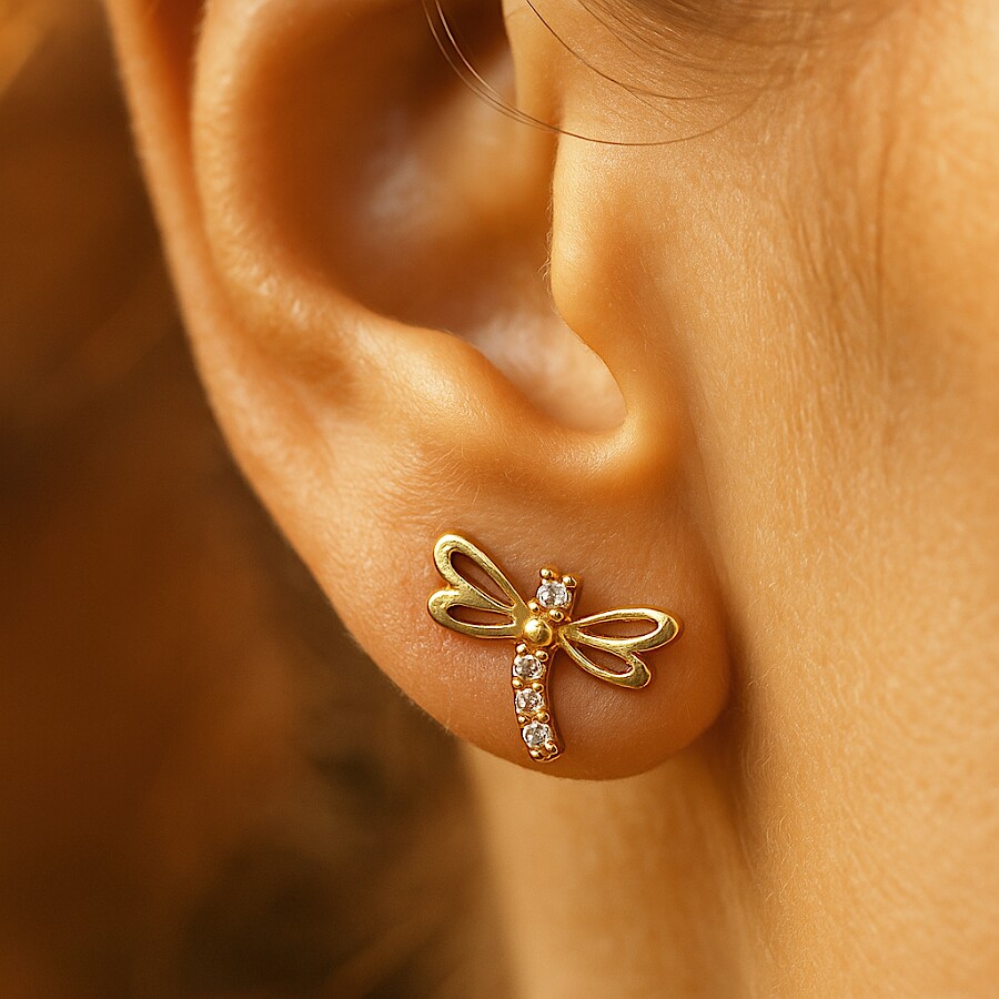 Náušnice zlaté Vážka se zirkony